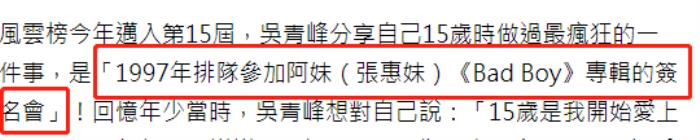 随后张惠妹在和王力宏的合作中曝出恋爱绯闻,两人不只在演唱会颁奖礼红毯上大方牵手,还在王力宏的演唱会上演激情拥吻的一幕,因此被粉丝们当作两人秘恋的佐证。而且,王力宏也在采访中表示自己喜欢年纪稍大的女生,张惠妹正好长她四岁。两人还曾合体一档音乐综艺,当王力宏深情安慰阿妹时,引无数CP粉为之动容。