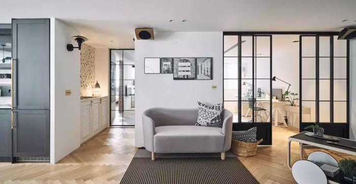 这个可爱的斯堪的纳维亚客厅的功能组件非常简单,所述嵌套咖啡桌,编织有点装饰,所述简单沙发,每一块是直截了当的,但是通过添加华丽的图案装饰和引人注目的室内植物,室内空间开始展现出自己的个性。
