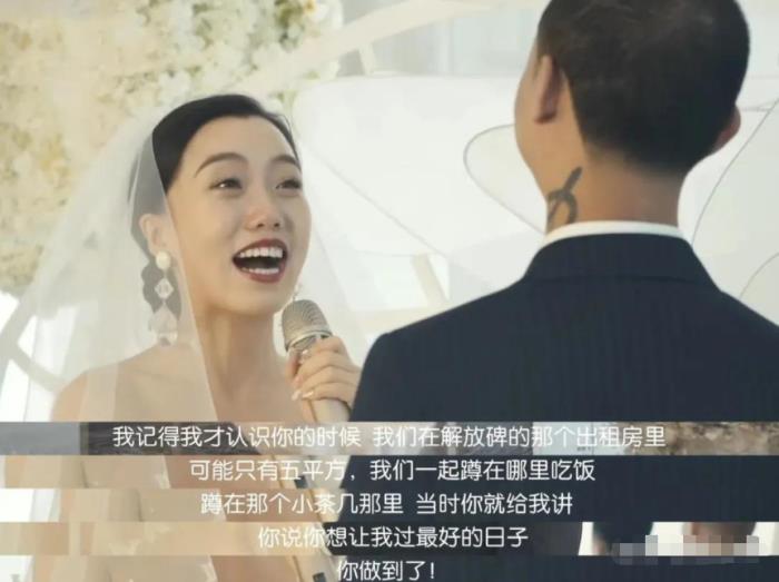 王斯然曾经在她的婚礼上对着GAI喊话“我认识你的时候我们一起住在五平米的小房子,蹲着吃饭,当时你说要给我过最好的生活,现在你做到了!”