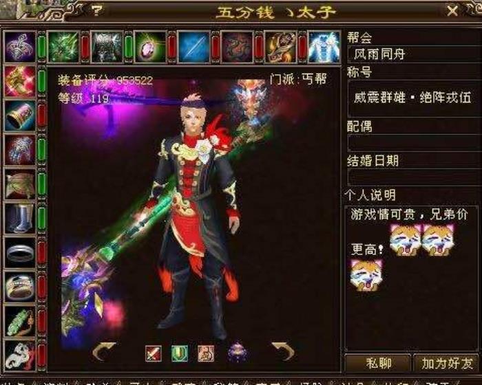 这个个人说明,暗合了笑我狂的游戏ID,孤狂与情重并起。