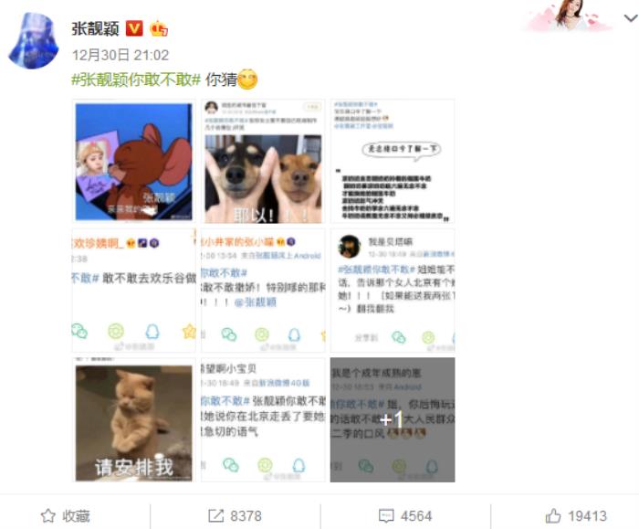 只是,张靓颖后来在游戏结束之后,还大胆贴出了与粉丝所玩的这十个“敢不敢”游戏内容,有一说一,张靓颖确实玩得很嗨,貌似也很乐、或者说是主动意曝光自己已有男友的事实。