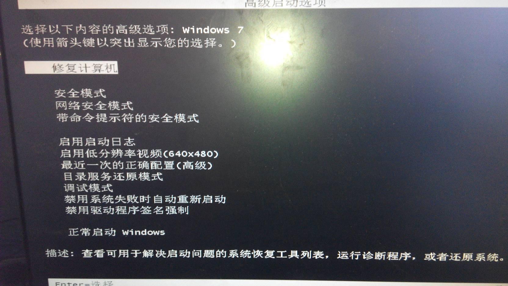 1、重新启动计算机,开机后按F8键,直到出现高级选项屏幕才动,然后松开手,选择“命令提示符安全模式”返回车上。