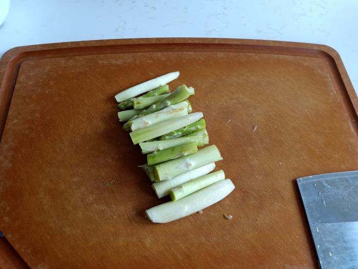 煮粥时,芦笋切段。